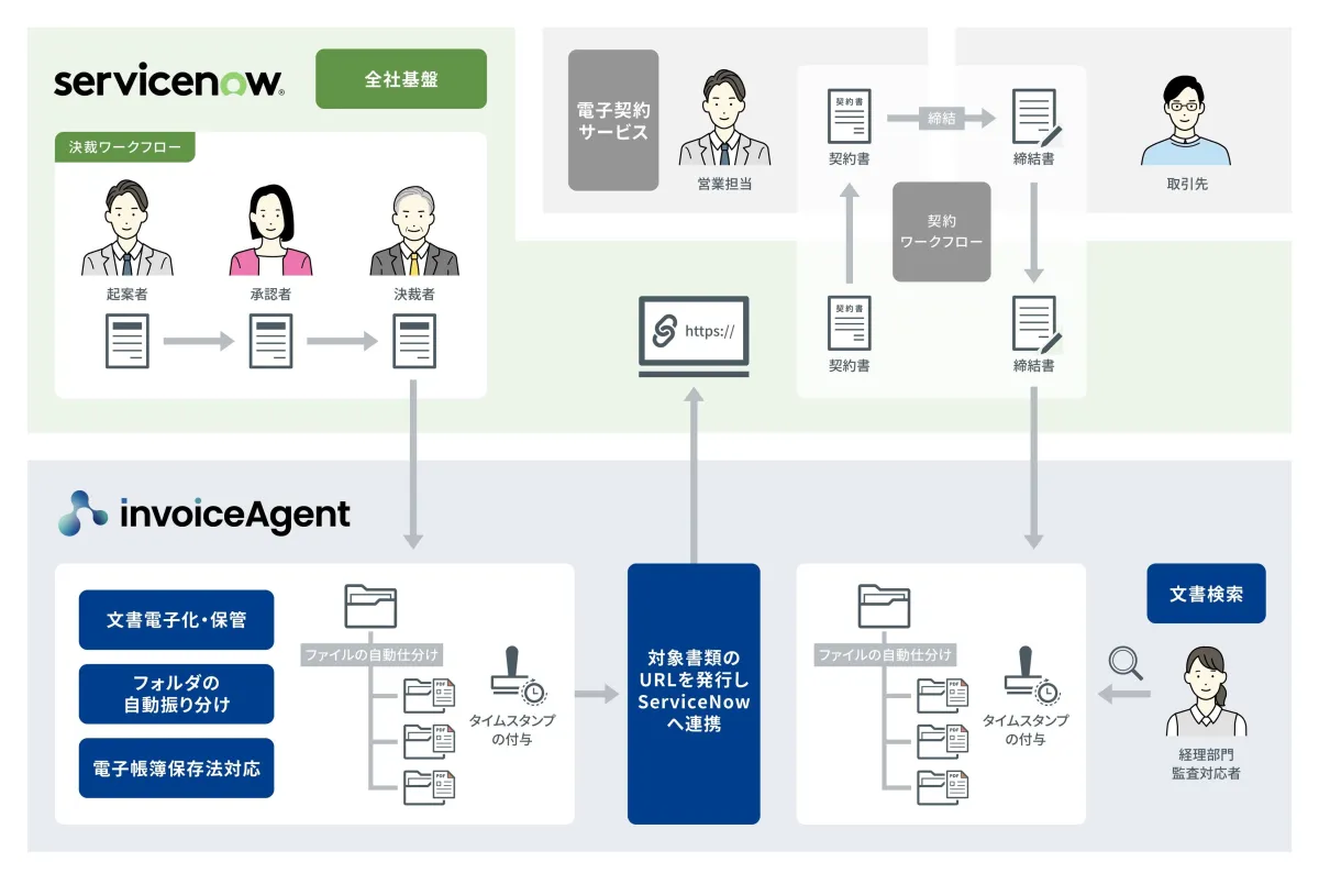 さらに、invoiceAgentとServiceNowが連携することで、業務の実態に応じた柔軟な自動連携が実現しています。年2回のServiceNowのアップデートにも自動で対応し、運用負荷が飛躍的に軽減されているのが特徴です。