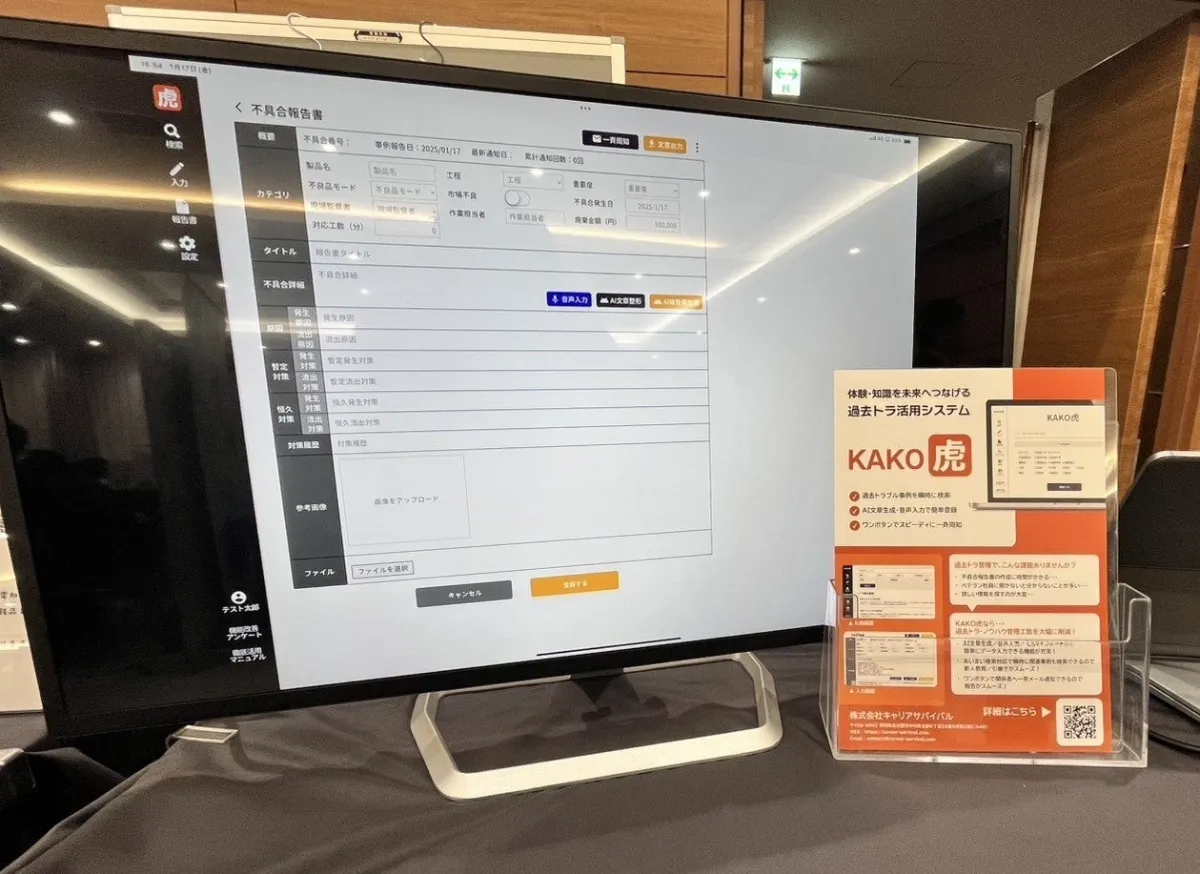 ブースでは、2024年10月にリリース予定の「KAKO虎」のデモが行われ、来場者はAIを活用した資料作成支援や過去トラブルの簡単検索機能を体験しました。参加者からは好評を博し、今後の導入に向けた意欲が高まった様子です。