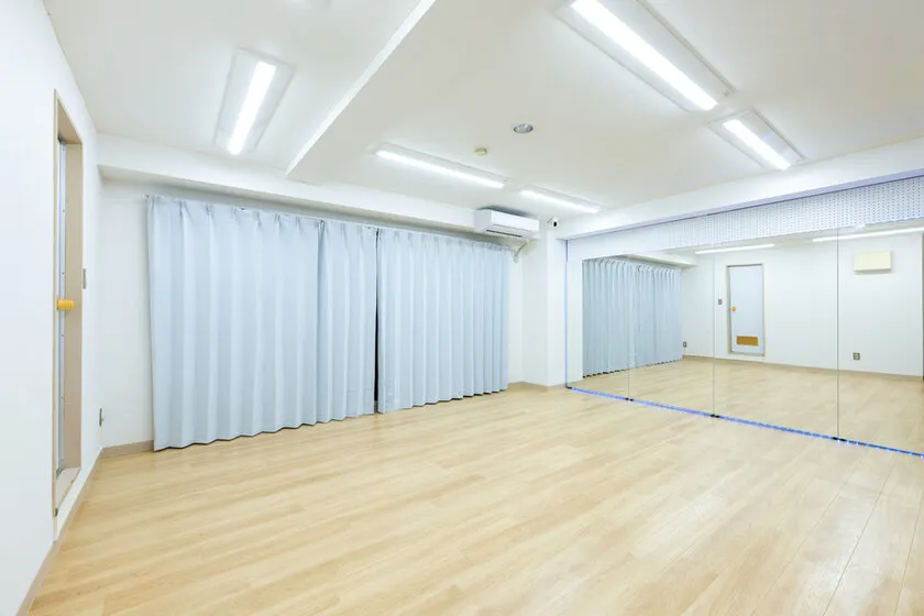 このスタジオには、幅360cmと高さ180cmの大型ミラーが設置されており、ダンスやヨガの練習に最適です。さらに、無料で使用できるヨガマット(最大4枚)やヨガブロック(最大8個)を完備しています。音楽を手軽に再生できるBluetooth対応スピーカーや、調光可能なLED照明も完備しており、撮影やイベントに最適な環境も整えています。