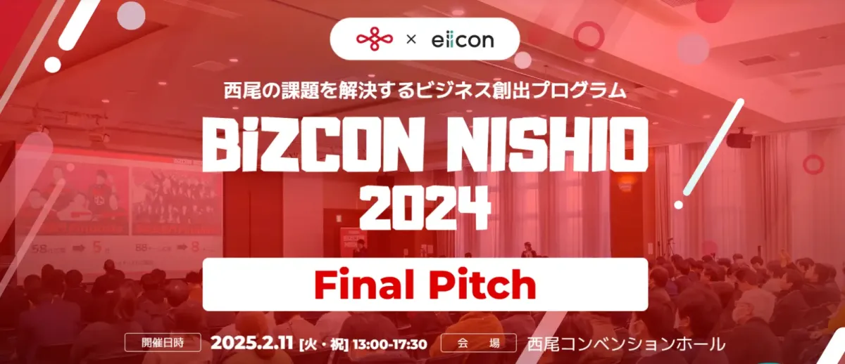 「BiZCON NISHIO 2024」は、西尾市が主催する画期的なビジネス創出イベントです。この取り組みは、地域の課題を解決する新しいビジネスアイデアを募集し、持続可能な経済の発展を目指しています。全国各地からさまざまなアイデアが集まり、厳格な審査プロセスを経て選ばれたファイナリストが、そのアイデアを実際に発表するファイナルピッチが行われました。