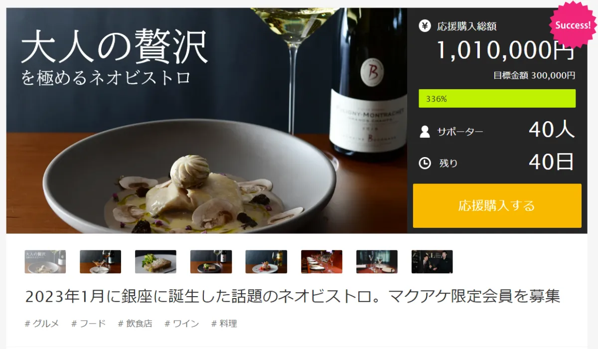 3月20日より始まったMakuakeプロジェクトでは、「大人の贅沢」を多くの人々に体験してもらうことを目的として、様々な特別なメニューや体験が用意されています。このプロジェクトでは、お得なお食事券や「ご乾杯の1杯と締めの1杯サービス」など、魅力的な特典が盛りだくさん。また、ワイン持込権や特別なボトルワインをグラス一杯から楽しめる権利も用意されており、まさにワイン好きにはたまらない内容となっています。
