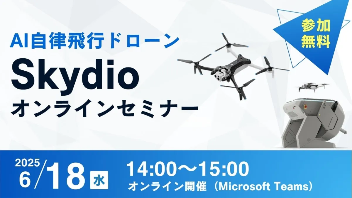 2025年6月18日(水曜日)に、田中電気株式会社が主催するオンラインセミナーが開催されます。題して「AI自律飛行ドローン Skydio オンラインセミナー」。今回は、AI技術を活用した次世代ドローン「Skydio」の性能と多様な活用例に焦点を当てた内容となっています。参加は無料なので、興味のある方はぜひご登録ください。