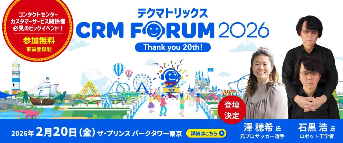 2026年2月20日(金)、東京で開催される「テクマトリックス CRM FORUM 2026」に、コンタクトセンター特化型の教育AIプラットフォームを手がけるVideoTouch株式会社が出展します。このイベントは、コンタクトセンター及びカスタマーサービス業界において必見の大型イベントであり、20回目の節目を迎えます。
