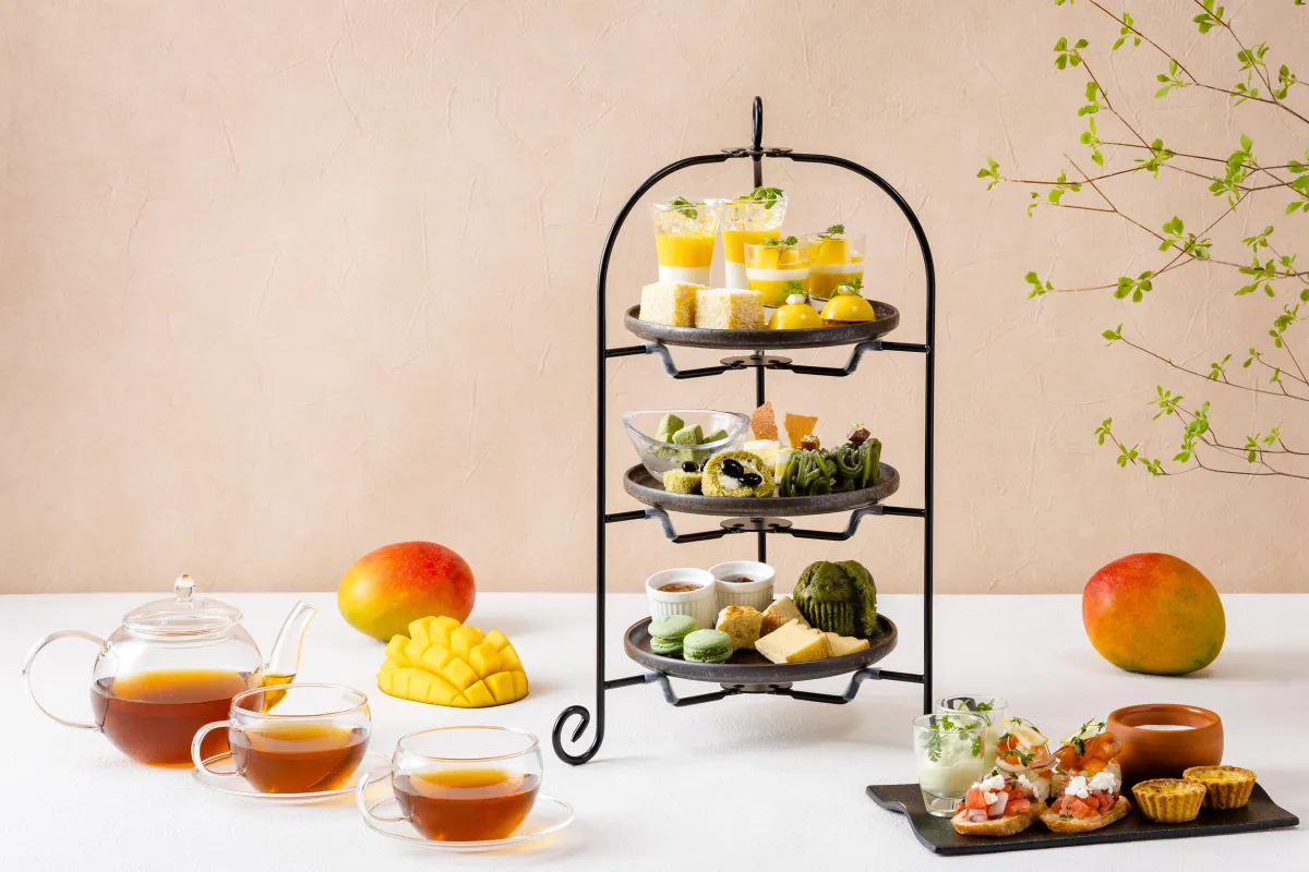 初夏にふさわしいこのアフタヌーンティーは、特に宮崎県産のマンゴーを使用したスイーツが豊富です。代表的なデザートには、「宮崎県産マンゴーとヨーグルトのヴェリーヌ」や「宮崎県産マンゴープリン」が含まれます。また、抹茶を使用した「抹茶わらび餅 黒蜜添え」や「宇治抹茶モンブラン」も大好評。これらの甘美なスイーツは、マンゴーのリッチな甘さと抹茶の深い味わいを見事に組み合わせた一品です。