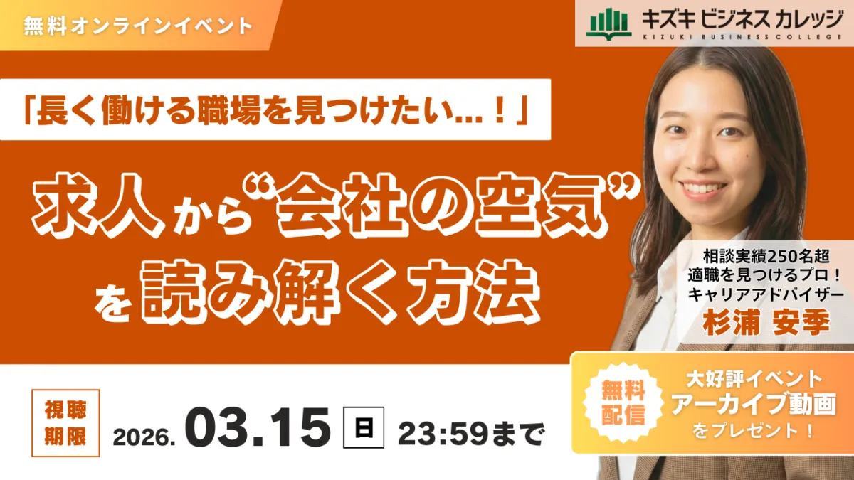 「求人読解力」を身につけ、求人票から職場の「空気」と「求められる行動」を理解できれば、あなたの就職活動のリスクは大きく減少します。そこで、就労移行支援事業所・キズキビジネスカレッジ(KBC)は、2026年2月10日に開催予定のオンラインセミナーのアーカイブ動画を配信します。このセミナーでは、企業が求人票に記載するメッセージを正しく解読し、自分のキャラクターに合った職場を見極める技術を学ぶことができます。