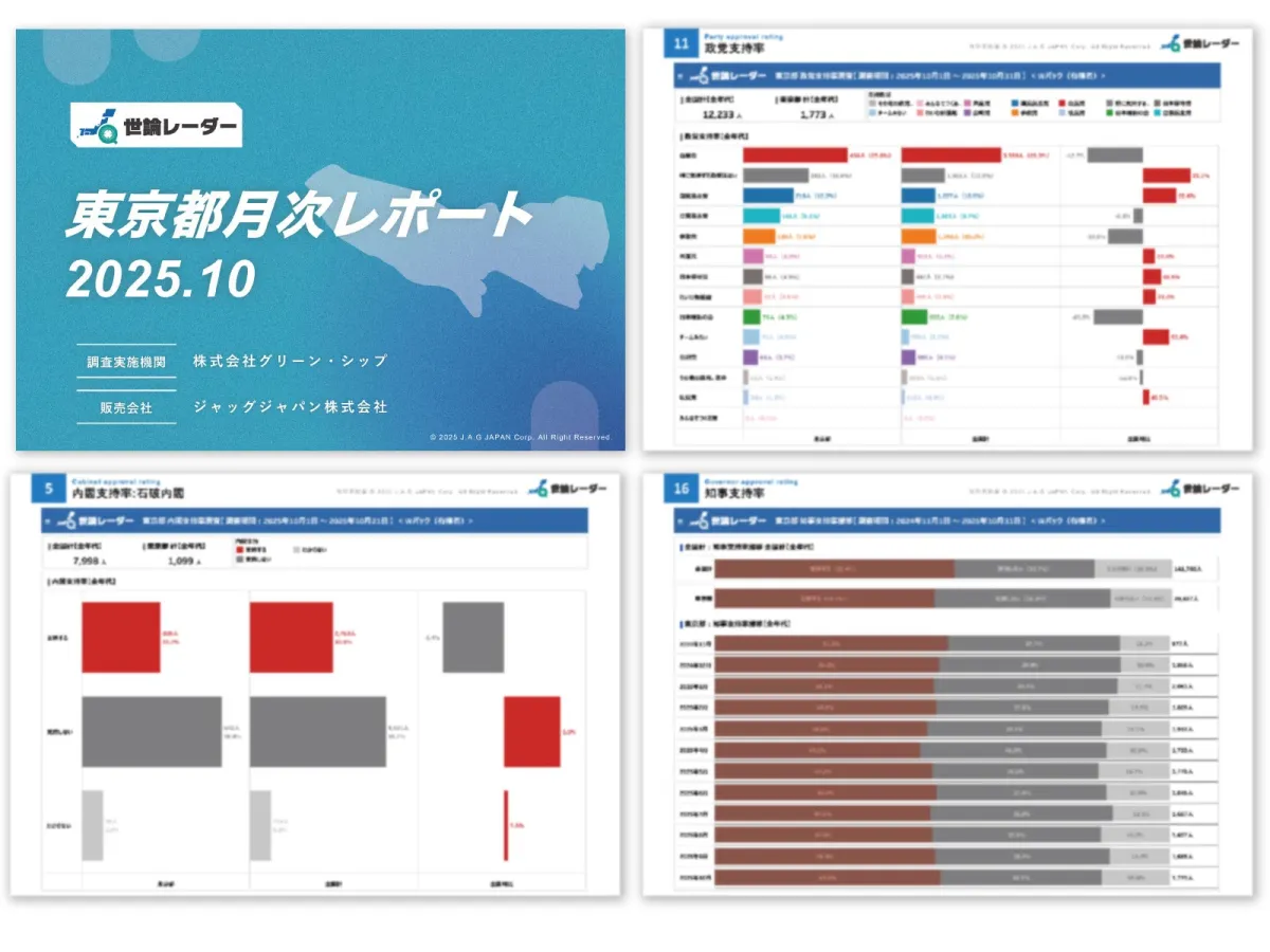 今回の提携により、グリーン・シップが提供する「世論レーダー」のデータをジャッグジャパンが専用サイトにて販売します。これまでながら、世論調査データは報道機関を通じて伝えられることが多い中、一次データとなる調査結果を直接手に入れることができるため、多くの研究者やメディア関係者にとって非常に有用なリソースとなるでしょう。