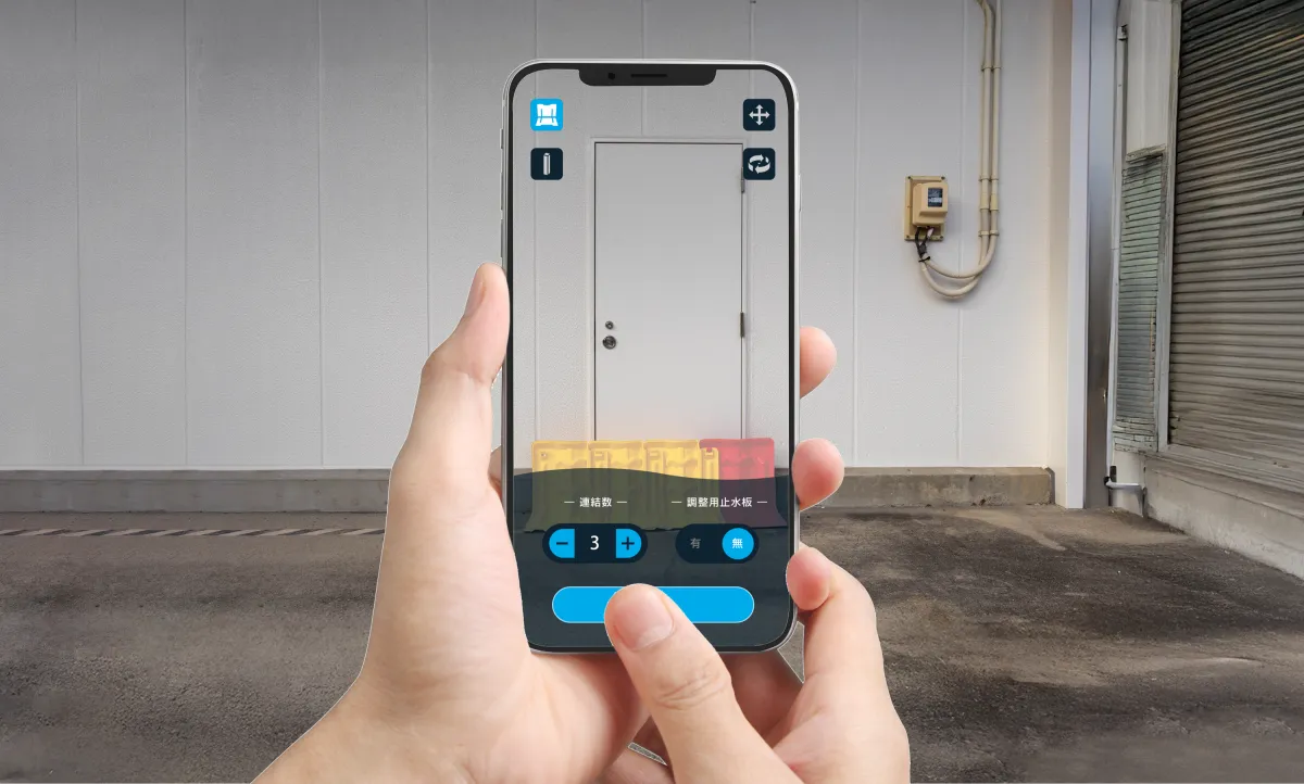 アプリ内で表示される止水板は実際の大きさで表示されるため、どのような状況で設置が可能かを簡単に確認できます。