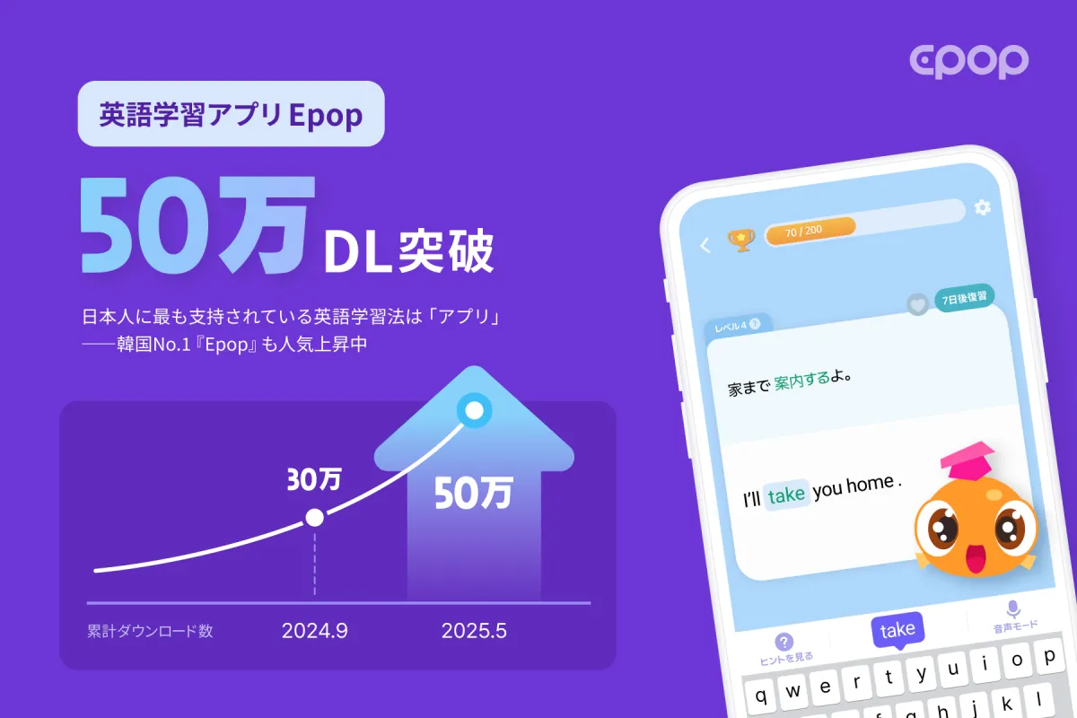 2023年6月20日、EpopSoftがAI英語学習アプリ『Epop(イーポップ)』の日本語版が累計50万ダウンロードを突破したと発表しました。このアプリは2023年にApp StoreおよびGoogle Playでの提供を開始し、わずか9ヶ月で30万件からさらに20万件を追加でダウンロードされました。