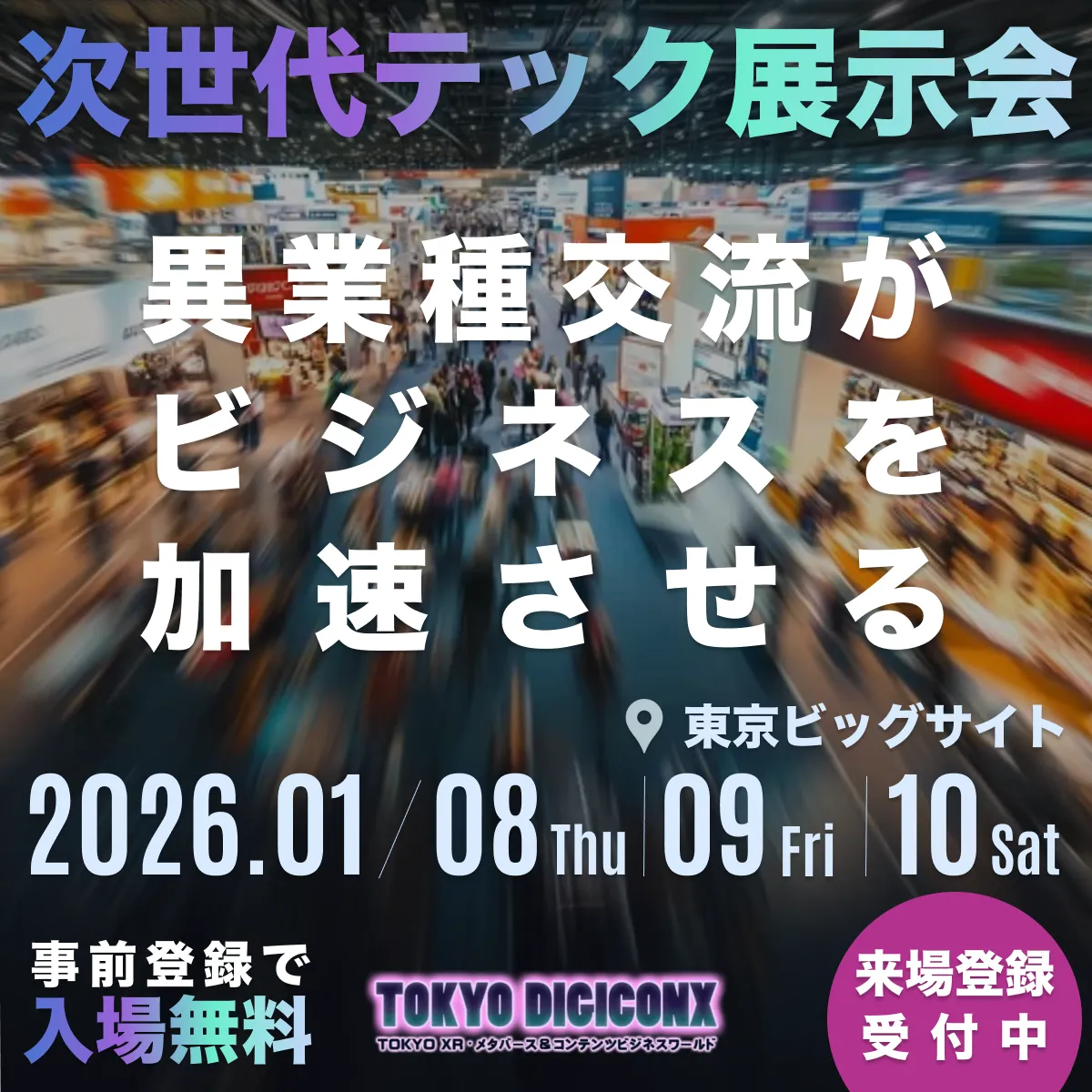 株式会社クラスターは、国内最大級のメタバースプラットフォームを提供する企業として、業界をリードしています。令和8年1月8日から10日までの間、東京ビッグサイトで開催される『TOKYO DIGICONX(第3回TOKYO XR・メタバース&コンテンツ ビジネスワールド)』に出展し、最新のAI接客サービス「AI Agent Flex」のデモを実施します。