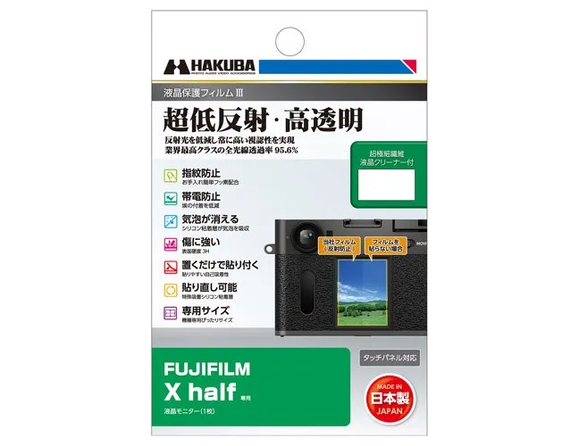 ハクバ写真産業株式会社が、新しいデジタルカメラ用液晶保護フィルムを発表しました。このフィルムは、特にFUJIFILMの「X half」に対応しており、業界内でも最高の低反射性と高い透明度を誇ります。これにより、反射を抑えつつ、常に視認性を高めています。