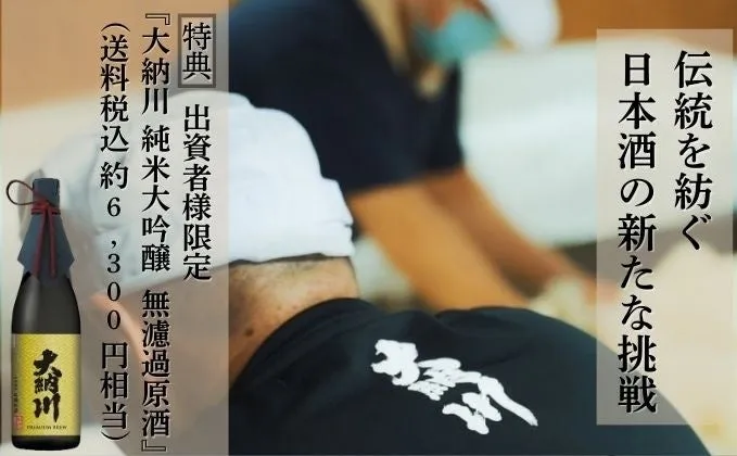 - - 特典: 出資者限定の「大納川純米大吟醸無濾過原酒」をお届けします。