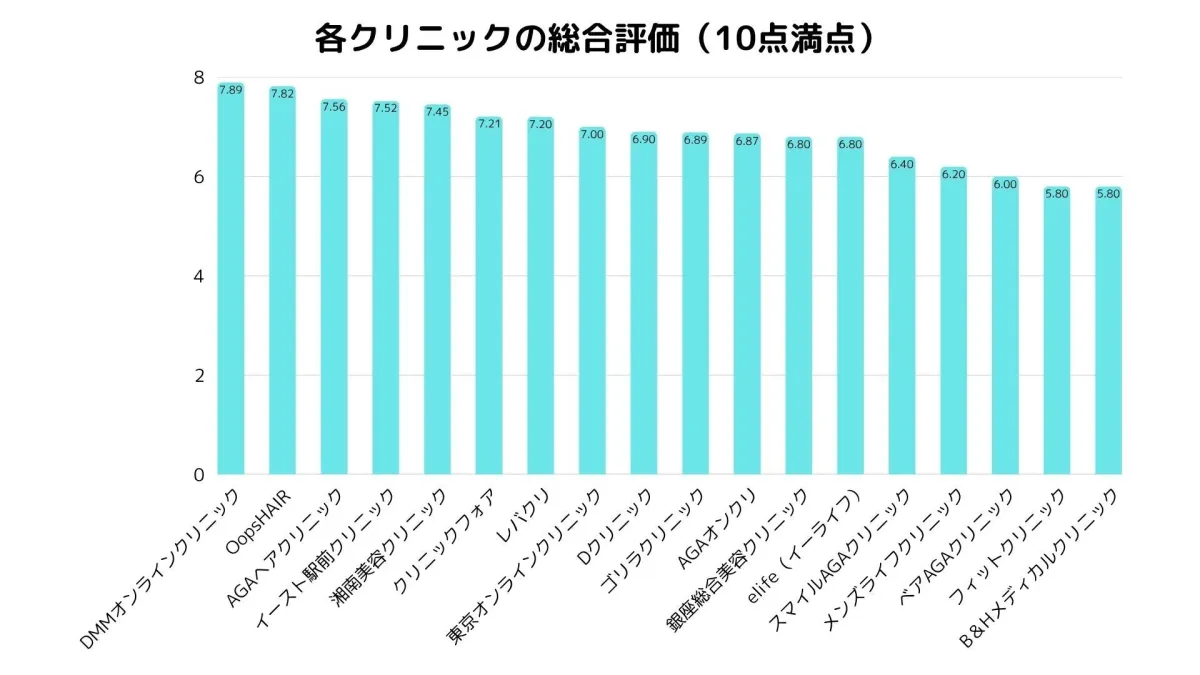 調査の結果、以下のAGAクリニックが高評価を得ました。これからAGA治療を考えている方にとって、信頼できる選択肢となるでしょう。
