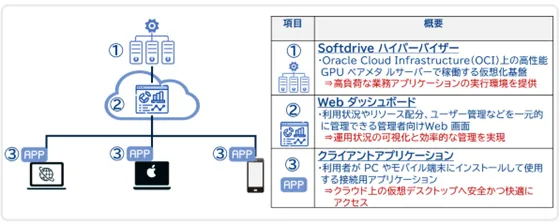 「Softdrive」は、OCIの高性能GPUベアメタルサーバー上で稼働し、独自のデータ送信プロトコルと高度なネットワーク最適化技術により、超低遅延かつ安定したデータ伝送を実現します。これにより、高負荷な業務アプリケーションでも手元のPCと遜色ない操作性が保証されています。