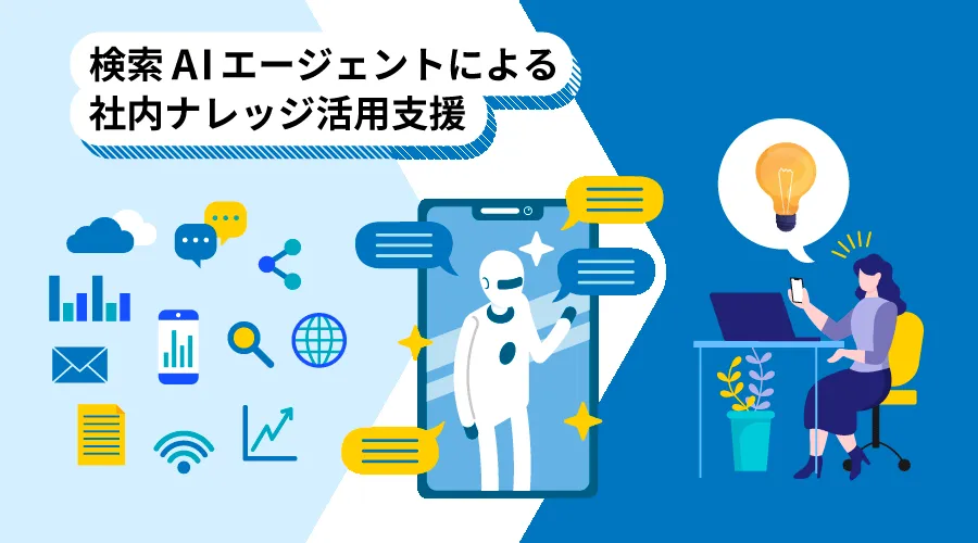 そんな中で登場したのが、「検索AIエージェントによる社内ナレッジ活用支援サービス」です。このサービスは、社内に散らばる情報をAIエージェントが横断的に検索し、活用できる環境を構築します。