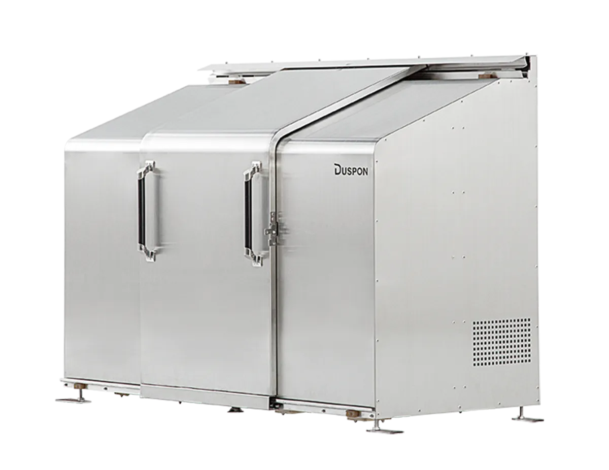 1995年に初めて登場した「ダスポン」は、地域の声を反映した製品としてスタートしました。地元の町内会長から寄せられたゴミ集積庫に関するさまざまな課題、例えば錆びや扉の重さ、カラスに対する被害などの問題を解決するために、ゴミステーションの開発が始まったのです。最初の製品、NAシリーズはオールステンレス製でシャッター式の構造を採用し、特にカラス対策において高い効果を発揮しました。この製品によって、5年間で200台以上が地域で利用されるまでになり、ナカノにとっても大きな転機となりました。