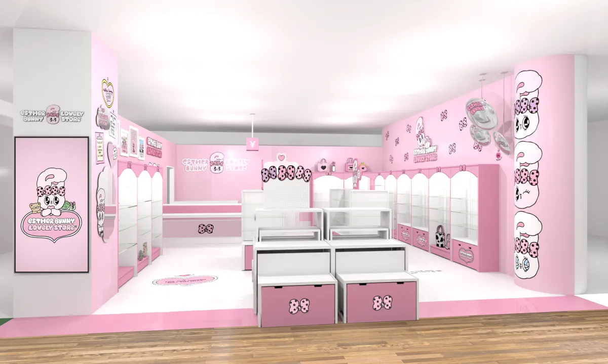 この新ストアは、エスターバニーが大切にしている「Love myself, Love yourself」のメッセージを体現した空間です。お客様は、ここで好きな自分を受け入れ、さらに自分自身を愛することができるよう思い出させてくれます。ピンクに彩られた店舗は、心をリフレッシュさせる場所として最適です。