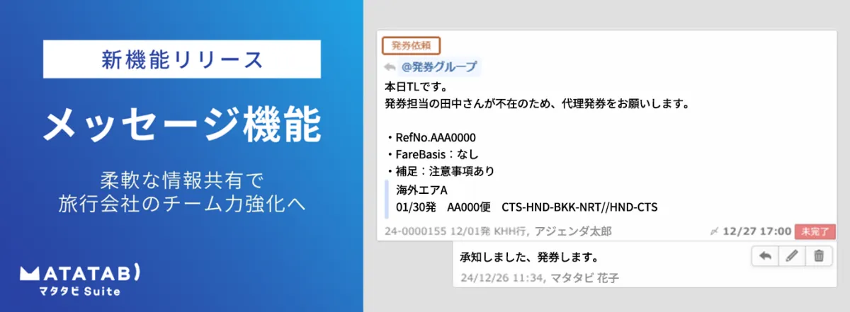 旅行業界の新たな改革!『マタタビ Suite』にメッセージ機能が追加されます