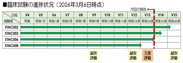 特定臨床研究は、術後36週目にはインプラントと連結されたサイドスクリューを撤去し、その後は独立した状態での経過観察に入ります。44〜48週目には最終的な生着評価と安全性評価の結果がまとめられ、研究は終了する予定です。