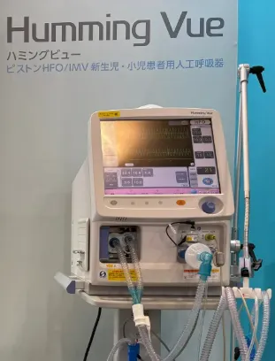 特に「Humming Vue」は、新生児から小児まで対応可能な革新的な人工呼吸器です。HFO(高頻度振動換気)と従来型の換気モードを高いレベルで両立し、多様な呼吸管理ニーズに応えています。直感的な操作性と高い信頼性を備えており、全国の大学病院や総合周産期母子医療センターで広く採用されています。