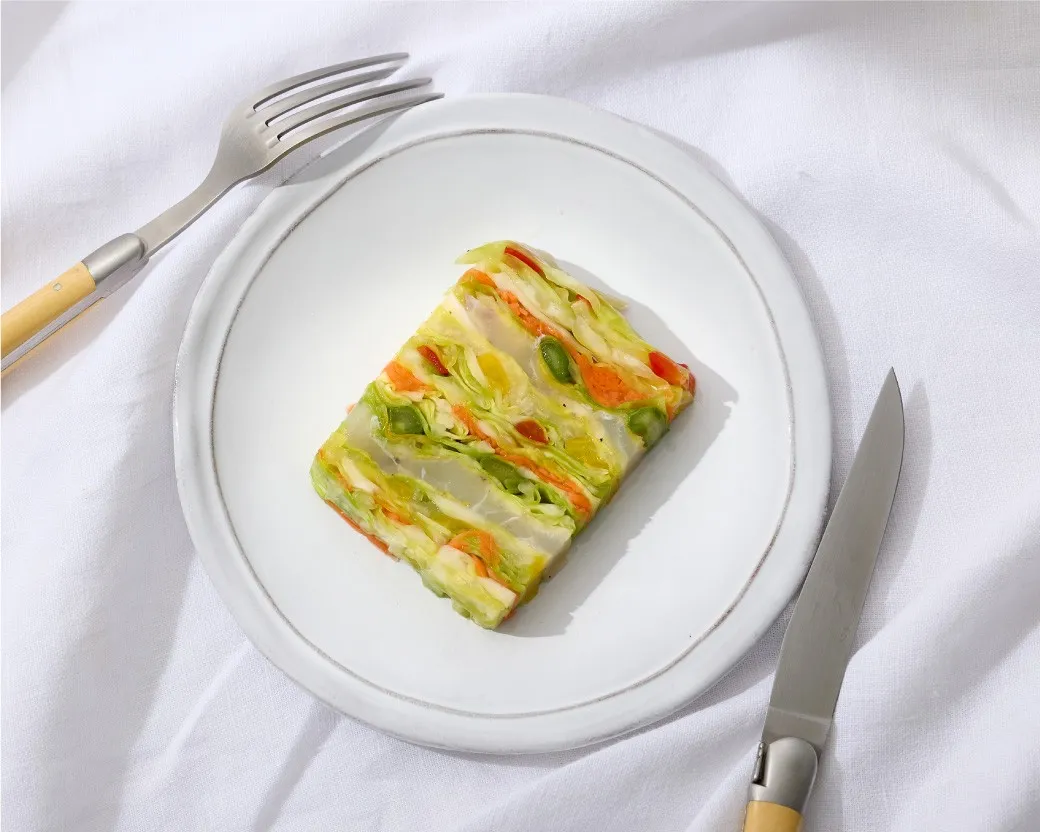 その中でも、特筆すべきは「真鯛のミルフィーユ」です。この商品は、2022年に「漬物グランプリ」で農林水産大臣賞を受賞した名品。昆布で〆た真鯛と、色とりどりの5種類の野菜(きゃべつ、アスパラ、人参、かぶ、パプリカ)を幾重にも重ねて仕上げた絶品の重ね漬けです。販売は週末限定で、756円(税込)で120gの内容量を楽しむことができ、冷蔵での賞味期限は8日と、とても新鮮な逸品です。