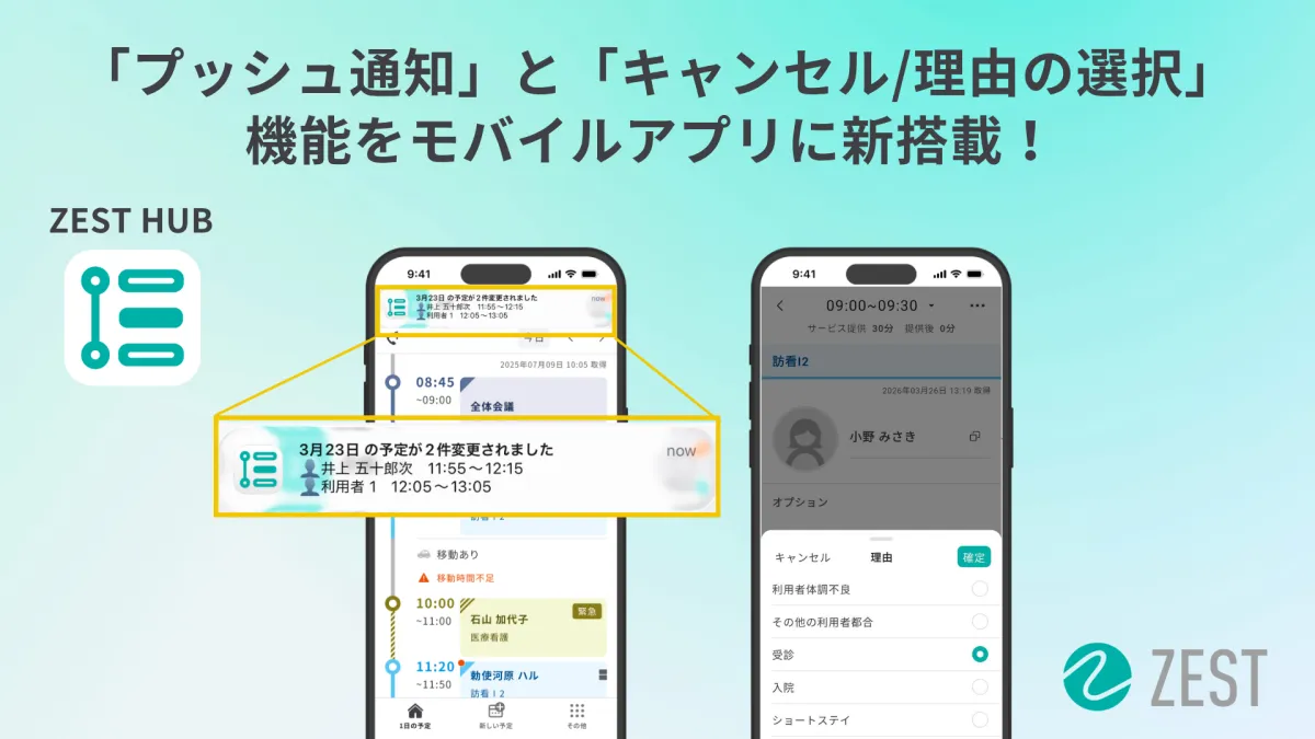 株式会社ゼストが運営する在宅医療・介護向けの収益改善プラットフォーム「ZEST」が、遅れていたモバイルアプリのアップデートを実施しました。新たに導入された「プッシュ通知機能」と「キャンセル理由の可視化機能」は、現場の運営に大きな影響を与える革新です。この新機能を用いることで、介護現場の業務をよりスムーズにし、収益改善にも寄与することが期待されています。