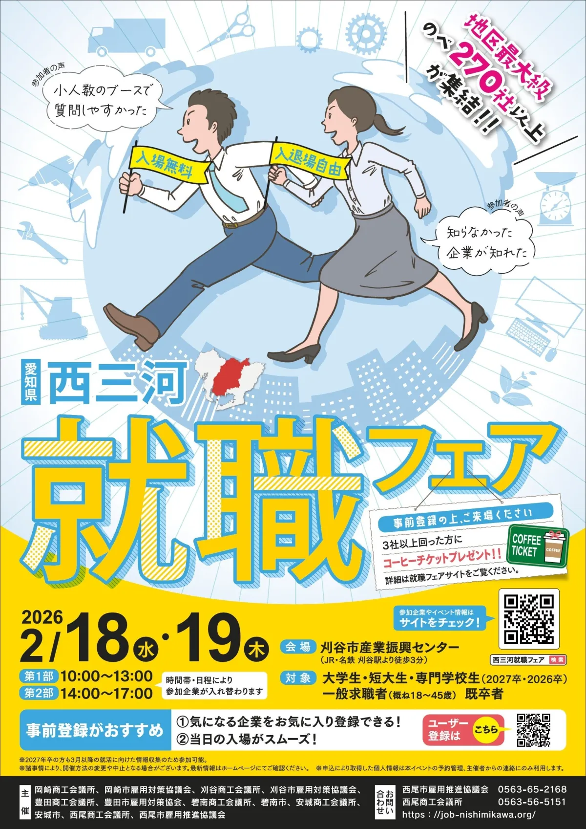 愛知県刈谷市で開催される「西三河就職フェア」は、西三河エリアの就職イベントの中でも特に注目されています。このフェアは、2026年2月18日と19日の2日間にわたって実施され、地域の企業が集まり、求職者との出会いの場を提供します。