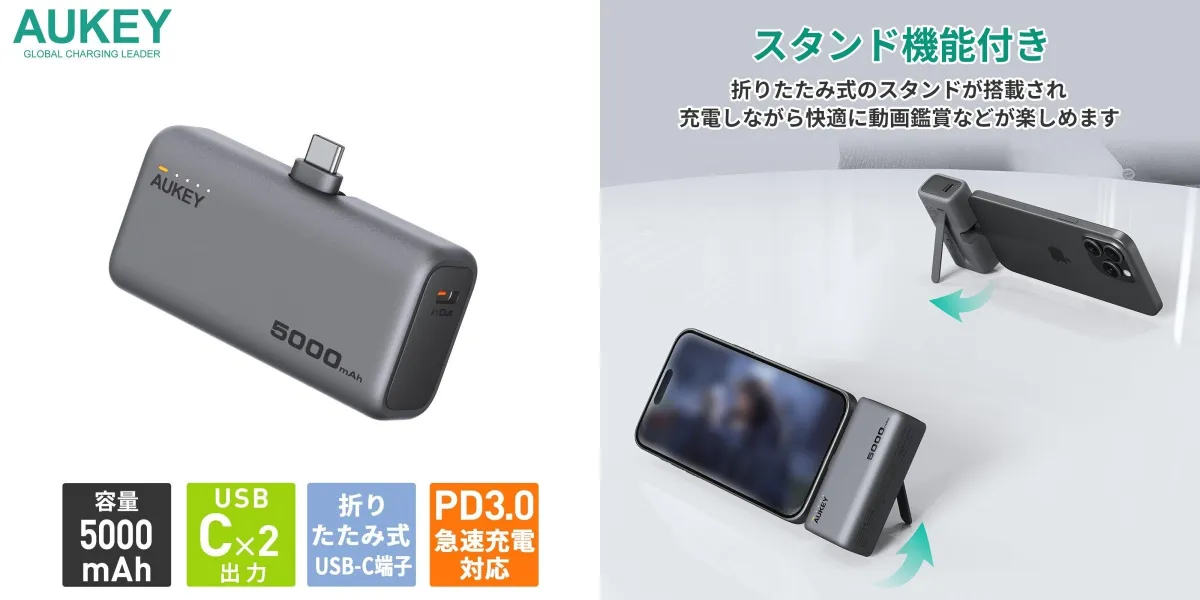 充電関連商品のグローバルトップブランド、AUKEY Technology Co., Ltd.は水曜日、2024年12月20日(金)から新たなモバイルバッテリー「Spark Mini 5000」を販売開始することを発表しました。この新商品は、USB-C端子が一体化した超コンパクト設計が特徴で、機器に挿し込むだけでケーブルを使わずに充電ができる便利なアイテムです。
