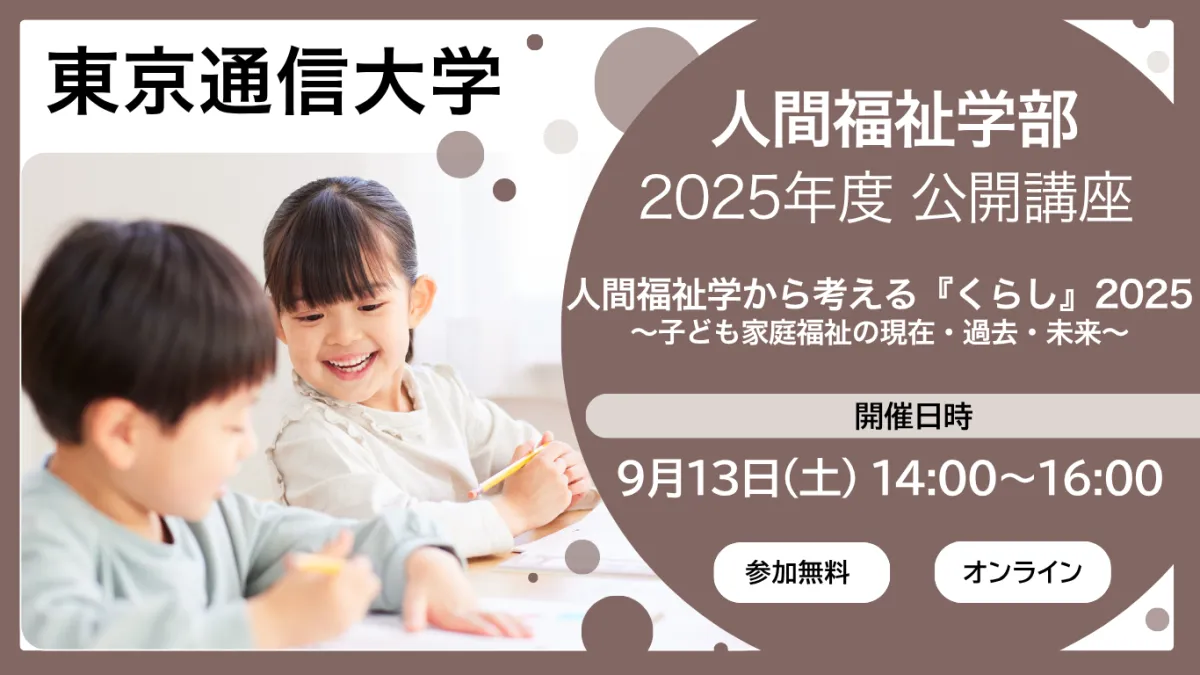 2025年9月13日(土)に、東京通信大学の人間福祉学部が公開講座を開催します。この講座では、現代の子ども家庭福祉をテーマに、減少する出生数や共働き家庭における保育サービス不足について考察します。講師には、人間福祉学部の名誉教授である才村純氏を招きます。