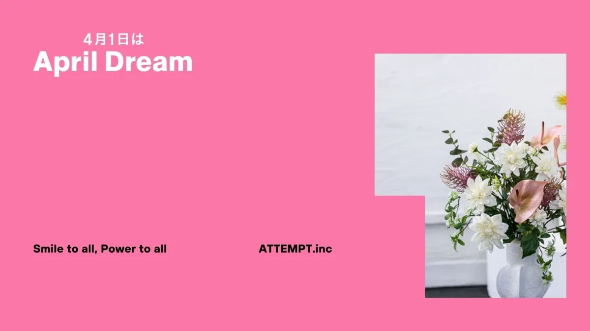 ATTEMPTは「April Dream」に賛同しており、4月1日を特別な日にしようという目標を掲げています。この日は企業が自らの夢を発信する日として、私たちATTEMPTもその一端を担っています。夢の実現に向け、創造的なアプローチで社会貢献を目指す企業として、アーティフィシャルフラワーを通じた新たな体験の提供に挑んでいます。