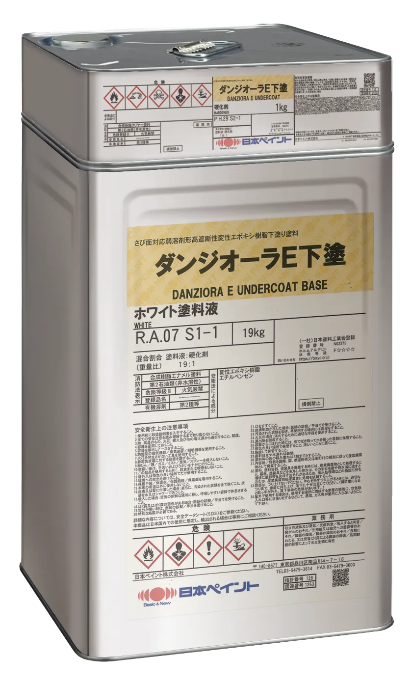 ダンジオーラE下塗は、腐食因子の侵入を抑制する高遮断性を持ち、施工時にはさび転換機能により、さび面を素早く安定した構造に変化させます。この特性により、公共工事などでの塗り替え作業が大幅に短縮されるため、工期の圧縮が実現可能となります。