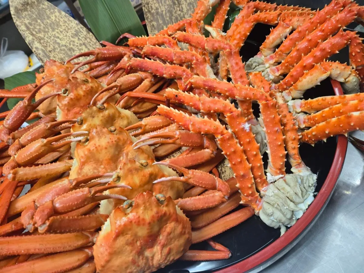 この「カニ祭り 夏の陣」では、なんと一人一杯の特大紅ずわい蟹(約800g)が提供され、さらに北海道産のタラバ蟹(約800g)の肩や脚の半身を、40分間の食べ放題として楽しむことができます。参加料金は7,500円(税込)で、カニ飯やカニ汁も含まれています。