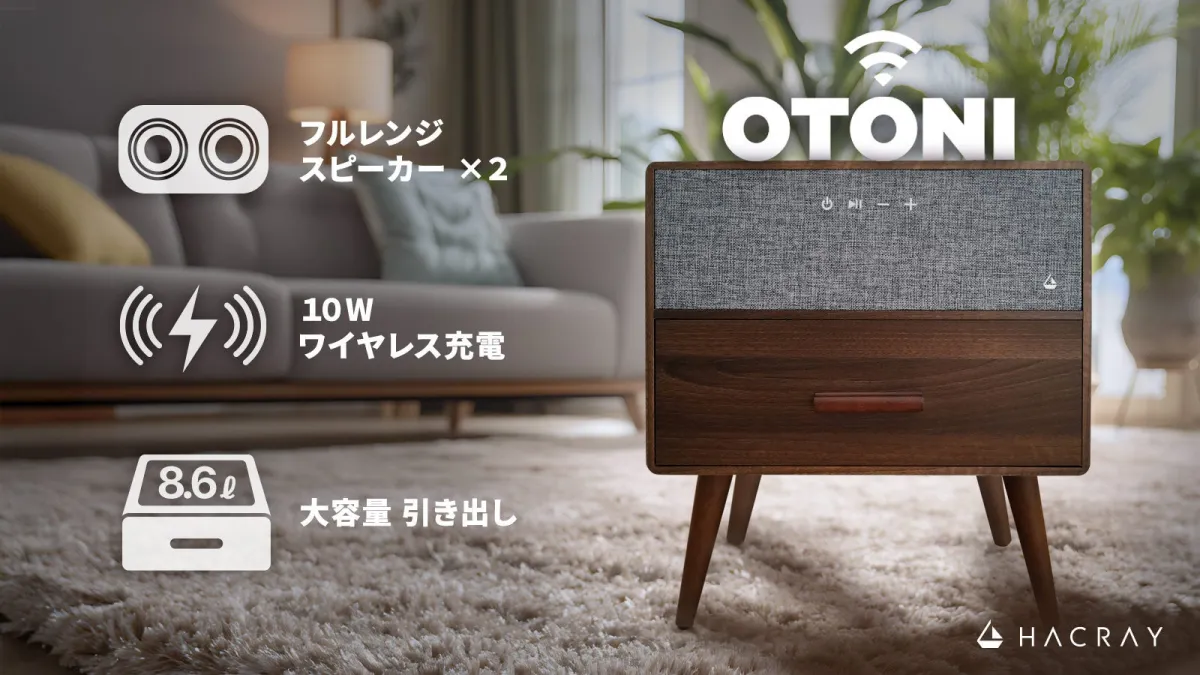 株式会社ロア・インターナショナルが手がけるHACRAYブランドから、新たなスマート家具「Bluetoothテーブルスピーカー OTONI」が登場します。この製品は、2025年6月30日からMakuakeにて先行販売される予定で、インテリアに馴染む木目調とデザイン性、さらにはBluetoothスピーカー機能を兼ね備えた一台となっています。