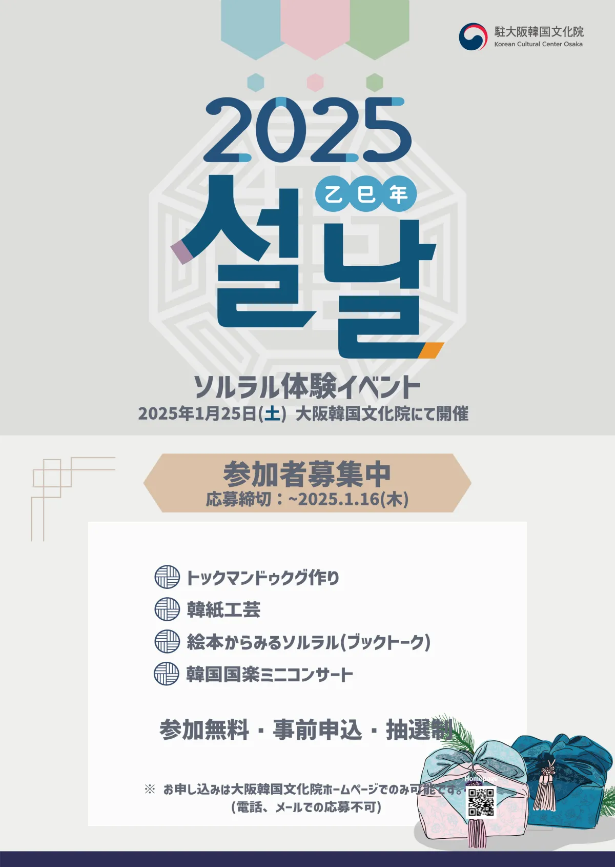 大阪に位置する駐大阪韓国文化院が、来る1月25日に「ソルラル」体験イベントを主催します。ソルラルとは、韓国の旧正月にあたる祝日で、家族や親戚が集まり、伝統的な食文化や催しを楽しむ大切な時期です。このイベントでは、西日本地域に住む人々が韓国の風習や文化を肌で感じることができる内容が用意されています。