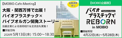 また、5月13日(水)には「MOBIO-Café-Meeting」が開催され、バイオプラスチック製パイプオルガンに関する特別講演や質疑応答が行われるほか、出展企業による技術発表も行われます。交流会もあるため、参加者同士のネットワーキングを深める絶好の機会です。