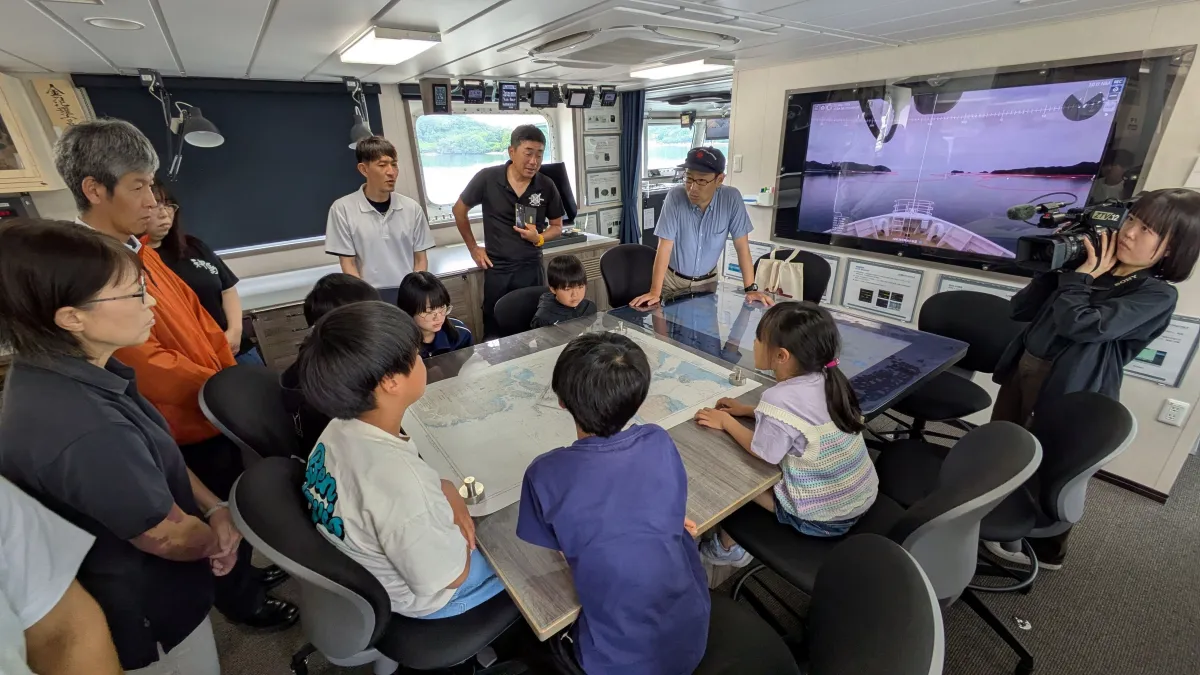 まず、参加した児童・生徒たちは商船学科の授業を体験し、練習船である「鳥羽丸」に乗り込みました。教員が用意した神島周辺を航行する船の絵を使い、どのような荷物が運ばれているのか、どんな職業の人が乗っているのかをクイズ形式で学びました。このアプローチは、子どもたちの興味を引きつけ、楽しく学ぶ環境を提供していました。