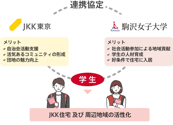 少子高齢社会が進む現在、地域社区においては自治会活動への参加者が減少し、住民同士の結びつきが薄まることが課題となっています。これに対処するため、JK東京はこれまでに8つの大学と連携して、学生を地域コミュニティに参加させる取り組みを行ってきました。