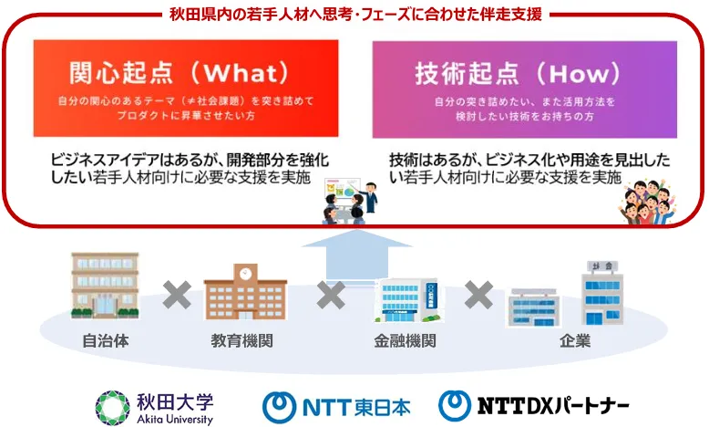 秋田県において新たな価値創出を支援する「ASHIOTO -足音- 2025」プログラムが始まります。これは、国立大学法人秋田大学、NTT東日本秋田支店、NTT DXパートナーの共同によるイノベーション・プログラムで、熱意を持つ若手人材の支援を行うことを目指しています。