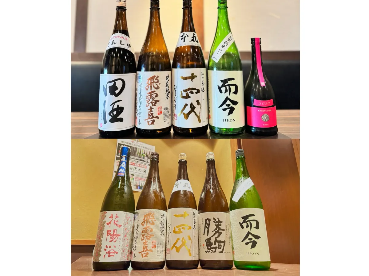 今回の「希少酒飲み比べコース」は、贅沢にも『十四代』や『而今』などの高級日本酒5種を楽しむことができる上に、120分の飲み放題まで付いて、お一人様3,280円(税込)という非常にお得な内容です。1杯ずつ各日本酒を50mlで提供し、飲み比べができるため、それぞれの味わいをじっくり堪能できます。