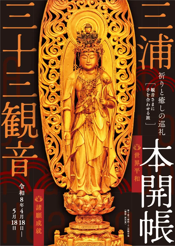 令和8年4月18日(土)から5月18日(月)まで、三浦半島で【三浦三十三観音本開帳】が開催されます。このイベントは、12年に一度の午年に行われる特別なものです。日頃はアクセスできない観音様に直接お参りできる貴重な機会となります。この期間中、家内安全や世界平和を願い、さまざまな祈りを捧げることができます。