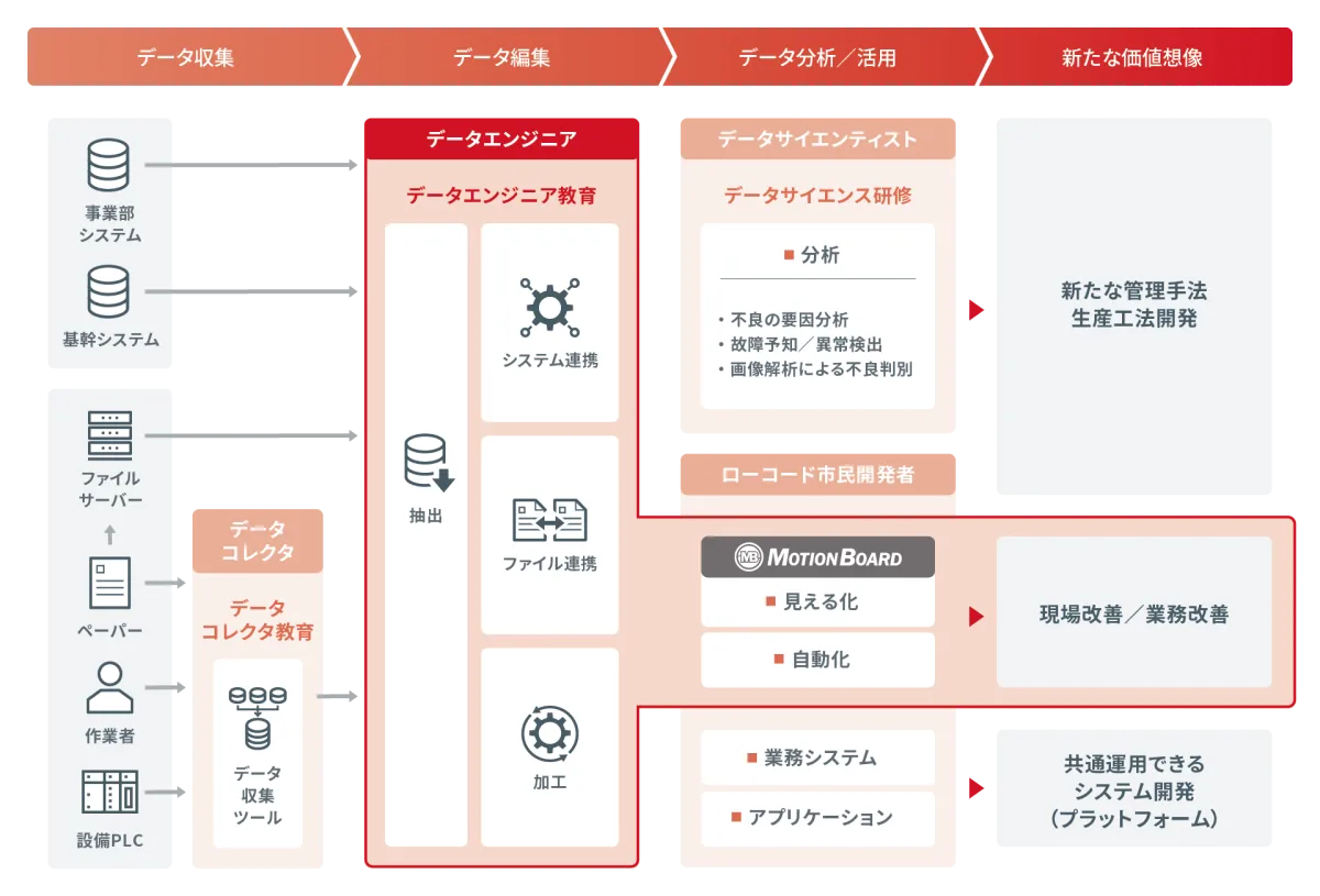 京セラ株式会社は、製造現場の発展に向けたデータエンジニア育成プログラムを展開しています。このプログラムは、IoTセンサーを活用したスマートファクトリー化の一環で、実践型の伴走教育を通じて、IT初心者を含む製造現場の技術者をデータエンジニアとして育成するものです。具体的には、データ活用プラットフォーム「MotionBoard」を利用し、現場の課題を解決するための実践的なスキルを身につけることを目指しています。