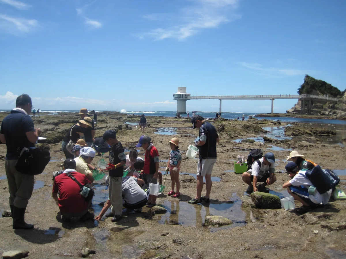 参加者は、潮の引いた浜辺で潮だまりに生息する生き物—カニや貝、魚など—を観察することができます。また、房総半島の海や自然について博物館での展示を通じて学ぶこともできるため学びと楽しみが一体となった貴重な時間です。