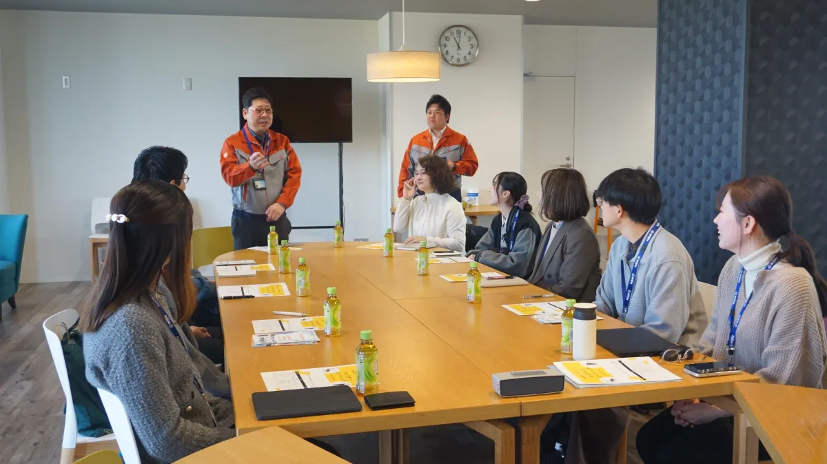 プログラムの開始を祝うキックオフミーティングには、4名の学生が参加しました。出身地は多様で、社会での活躍が期待されています。学生たちは先輩社員との座談会で熱心に耳を傾け、積極的な姿勢を見せました。「広くておしゃれなランチホールを、単なる食事の場だけにしたくない」と意気込みを語る学生たちの声が印象的でした。