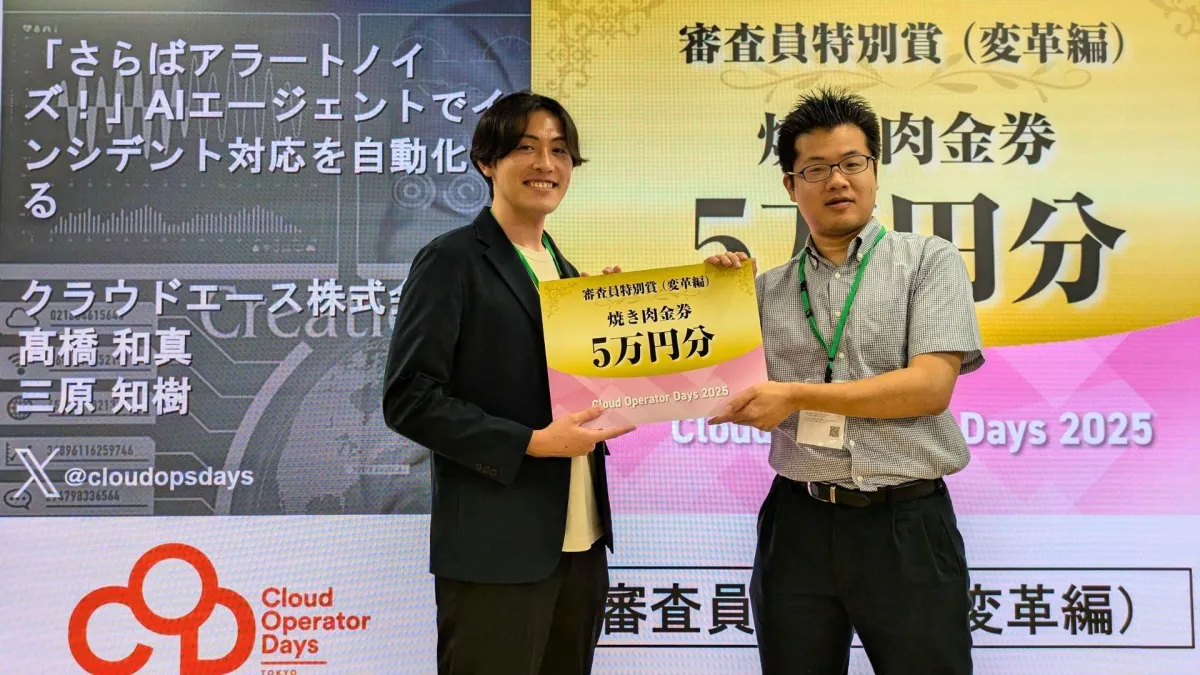 クラウドエース株式会社が、2025年9月5日に開催された「Cloud Operator Days Tokyo 2025」(CODT 2025)において、審査員特別賞の変革編を受賞しました。このカンファレンスは、クラウドインフラ運用技術者に向けたもので、今回のイベントは「運用者に光を! 〜創る運用、遺す運用〜」というテーマのもとに展開されました。