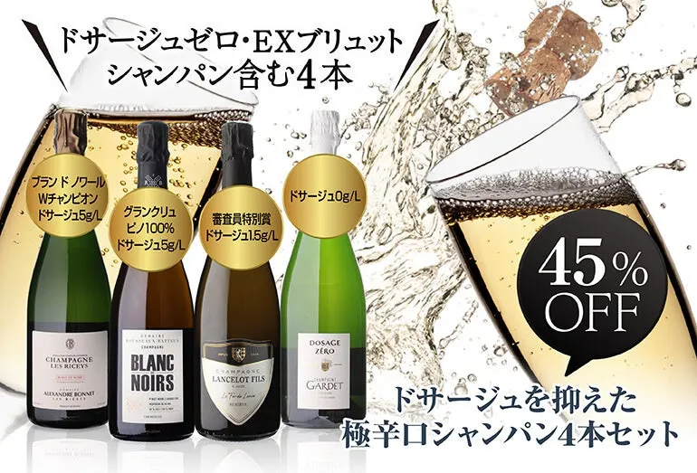 - - ドサージュを抑えた極辛口シャンパーニュ4本セット
