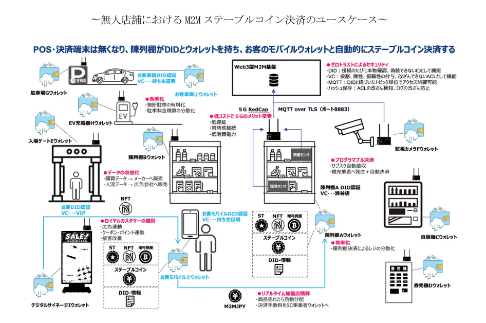 この取り組みは単なる暗号資産やトークンの開発を超え、次世代の決済インフラとしての大きな意義を持つものです。例えば、EVの自動充電決済や、無人店舗での販売、IoTデバイスによるデータ販売など、様々な場面での価値交換を可能にします。このように、機械同士がリアルタイムで価値を交換する「M2M経済圏」の中心としての役割を果たすことが期待されます。