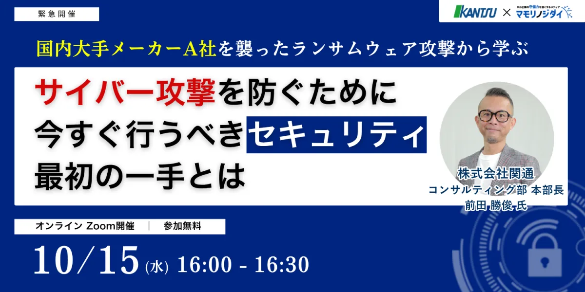 2024年9月、国内の大手メーカーA社が深刻なランサムウェア攻撃に見舞われました。この攻撃は、単にシステムのダウンを引き起こすだけでなく、重要なデータの漏洩という重大なリスクをもたらしました。そこで、株式会社スリーエーコンサルティングが主催するオンラインセミナーが、2025年10月15日(水)に開催されることが決定しました。