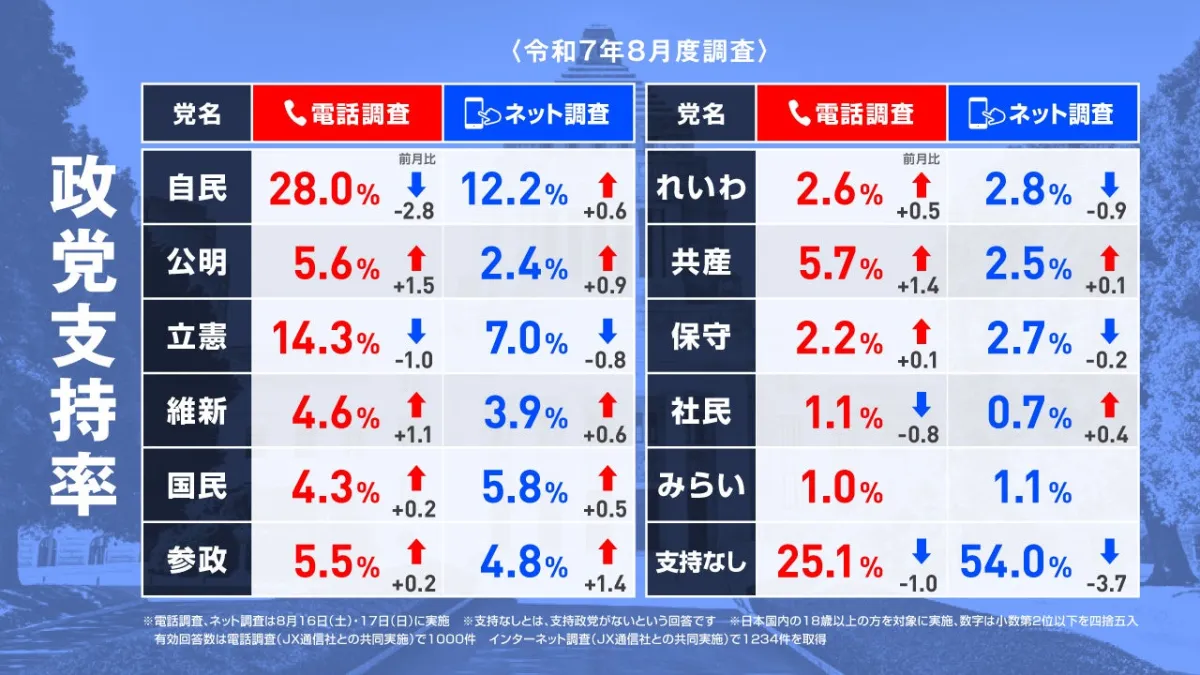 2025年8月16日と17日の2日間、日本国内の18歳以上を対象に行われたハイブリッド意識調査の結果が注目を集めています。この調査は、選挙ドットコムとJX通信社との共同企画によって実施され、電話調査とインターネット調査の両方を用いることで、より多角的な意見を集めることができました。