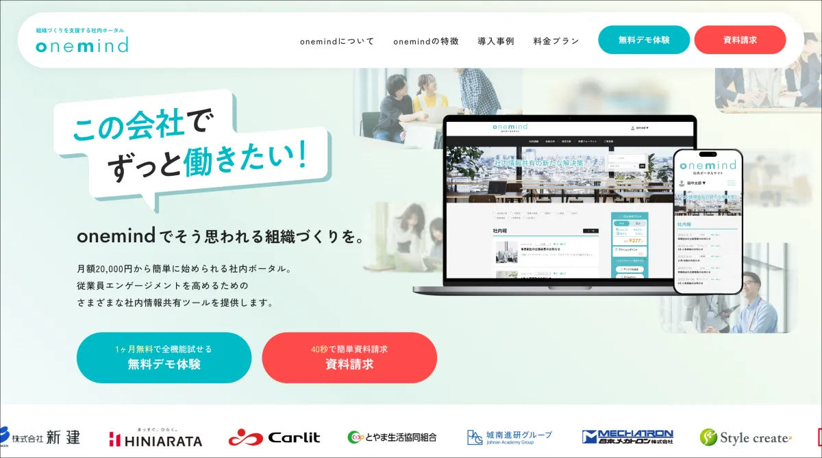 『onemind』は、企業の理念に基づき、社員が心地よく働ける環境作りを手助けするポータルです。情報の発信だけでなく、社員のエンゲージメントを向上させ、より主体的な参加を促すことを目指しています。