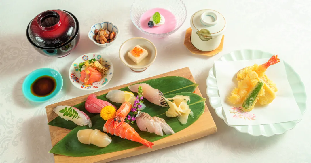 当キャンペーンでは、淡路島の新鮮な旬の食材をふんだんに使用した、お得な和食メニューを楽しむことができます。なかでも注目なのは、淡路島近海で獲れた魚介を使った特撰握りを含む「鮨・天麩羅御膳」です。このコンビネーション御膳は通常価格8,000円ですが、特別に5,500円でご提供。さらに、鮮やかな海鮮が盛り込まれた「海鮮ちらし御膳」や、揚げたての天ぷらが楽しめる「天重御膳」も同じ価格で用意しています。