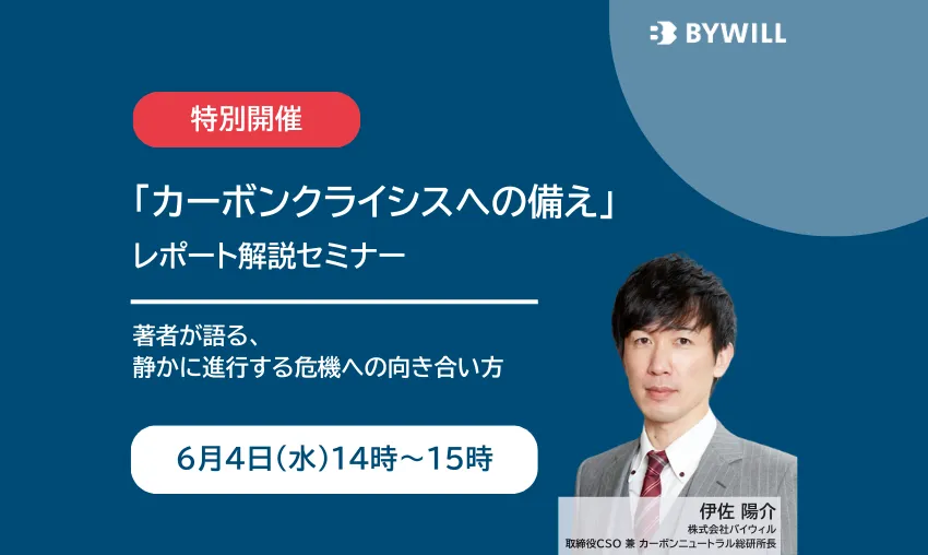 2025年6月4日(水)、株式会社バイウィルが主催する無料オンラインセミナー『カーボンクライシスへの備え』が開催されます。このセミナーは、カーボンニュートラルの達成に向けた日本企業の課題やリスクを解説し、今後の行動方向を示します。